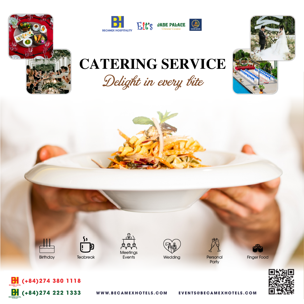Becamex Hotels specializes in providing high-class outside catering services from tea break, finger food, set menu to buffet, include many type events services: