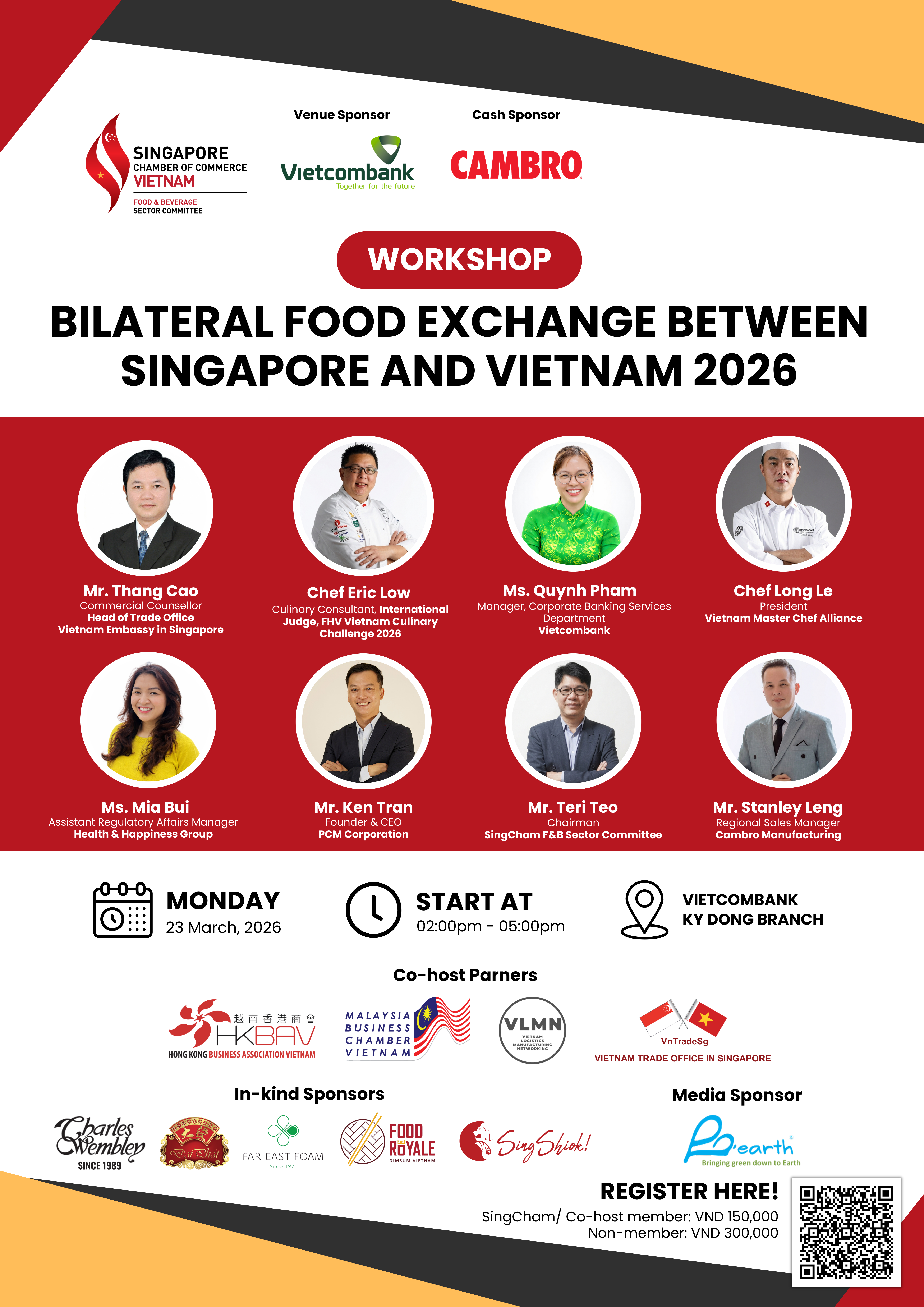 The “Bilateral Food Exchange between Singapore and Vietnam 2026” is a signature industry event organized by the SingCham F&B Sector Committee to strengthen collaboration and trade ties between the food ecosystems of Singapore and Vietnam.