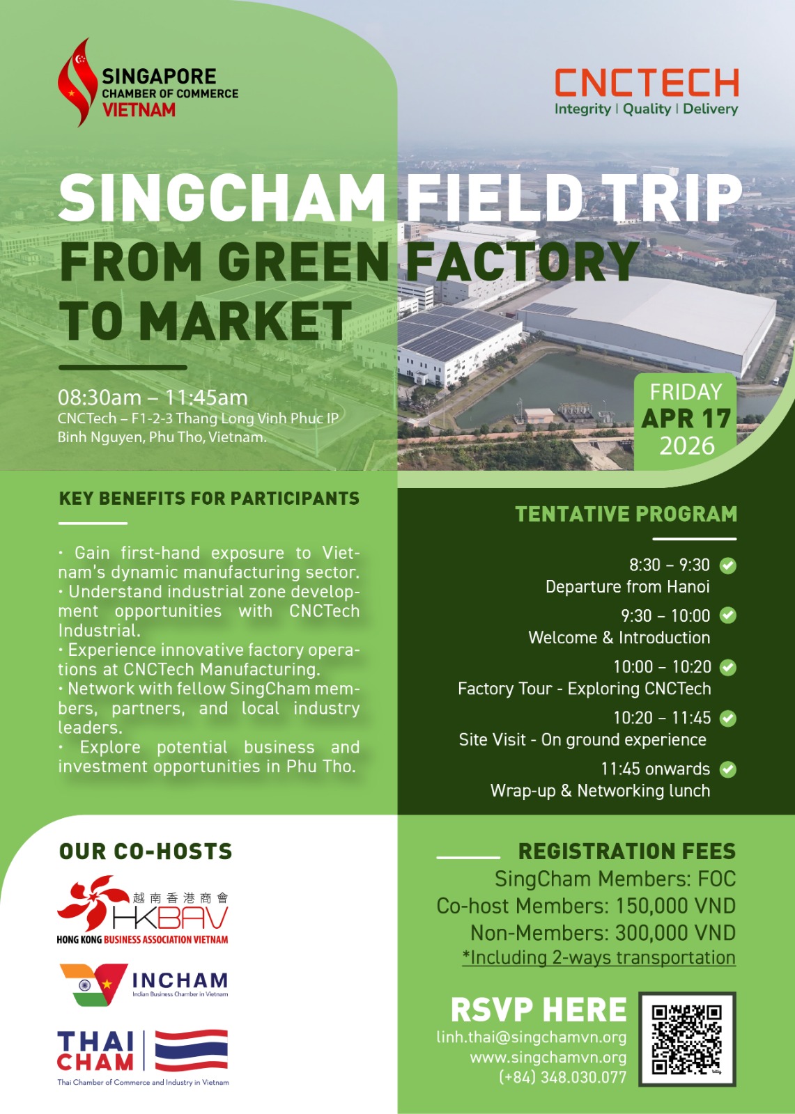 • 8:30 – 9:30: Departure from Hanoi to CNCTech Industrial – Vinh Phuc, Phu Tho