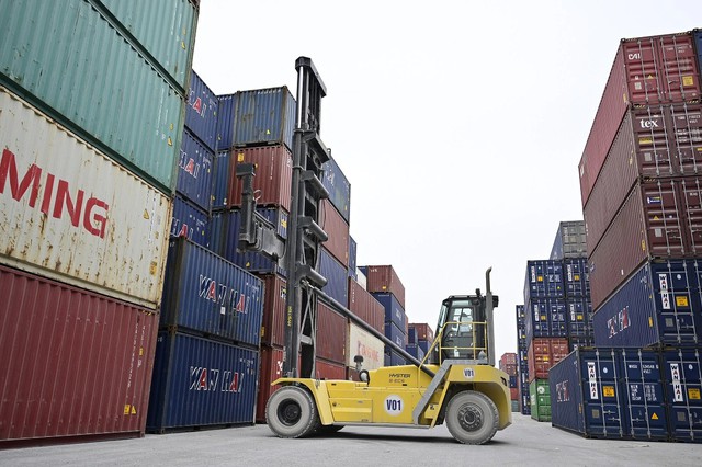A forklift handles shipping containers at an inland container depot - PHOTO: VGP