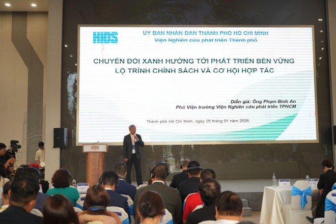 胡志明市发展研究院副院长范平安就“向可持续发展转型:规划、政策与合作机遇”这一主题进行分享。该报告集中分析了推动绿色转型的国内外背景,以及越南实现 2050年净零排放承诺的规划;重点解读了绿色增长、碳市场等核心政策,并强调了胡志明市在试点新机制和新政策方面的先锋作用,从而为企业在可持续发展进程中开辟了众多的合作与投资机遇。