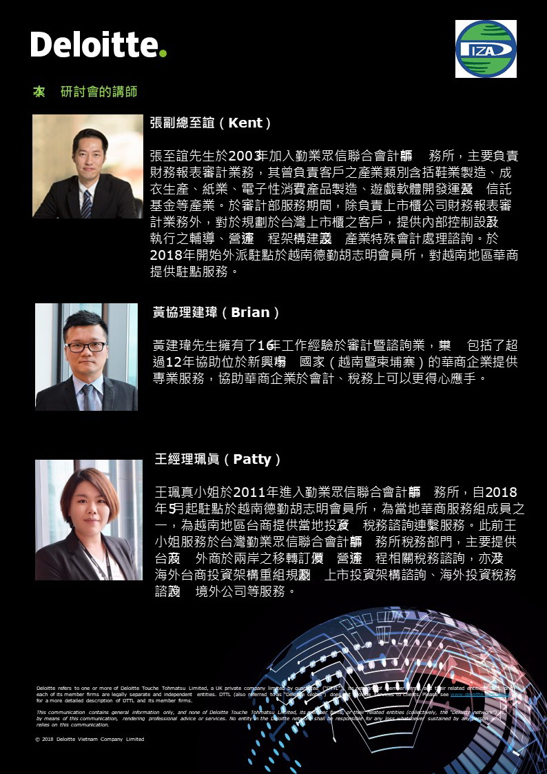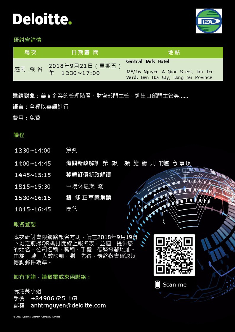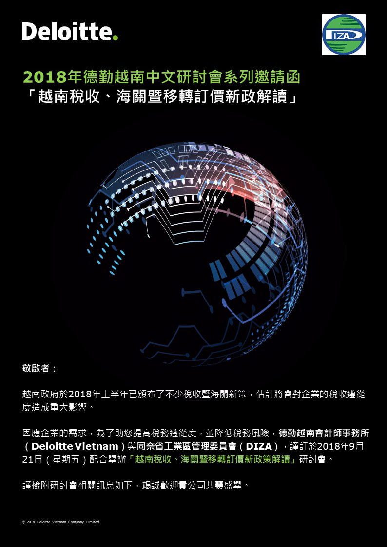 2018年德勤越南中文研討會系列邀請函 「越南稅收、海關暨移轉訂價新政解讀」