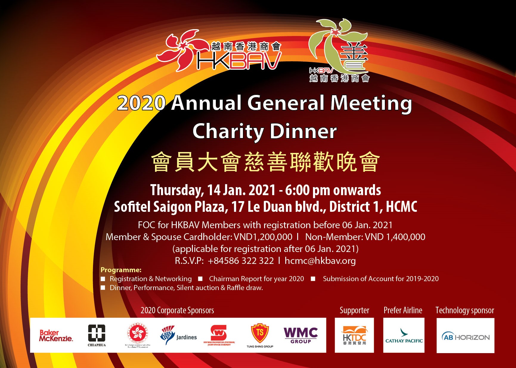 lease be informed that our HKBAV 2020 Annual General Meeting Charity Dinner will take place at Sofitel Saigon Plaza. Taking this opportunity, we’d like to express our sincere gratitude for your support during the year and invite you to join with us.