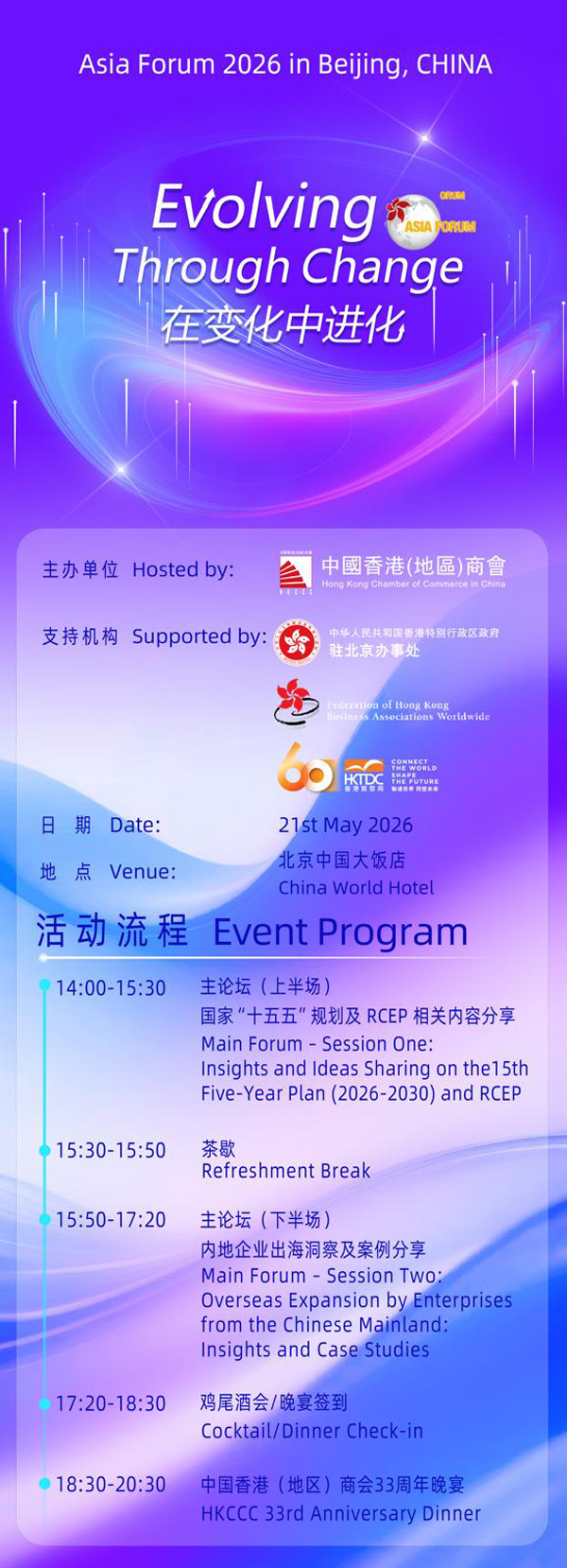 We are pleased to inform you that the Asia Forum will be held from 20st May 2026 to 22rd May 2026 in Beijing, China this year.