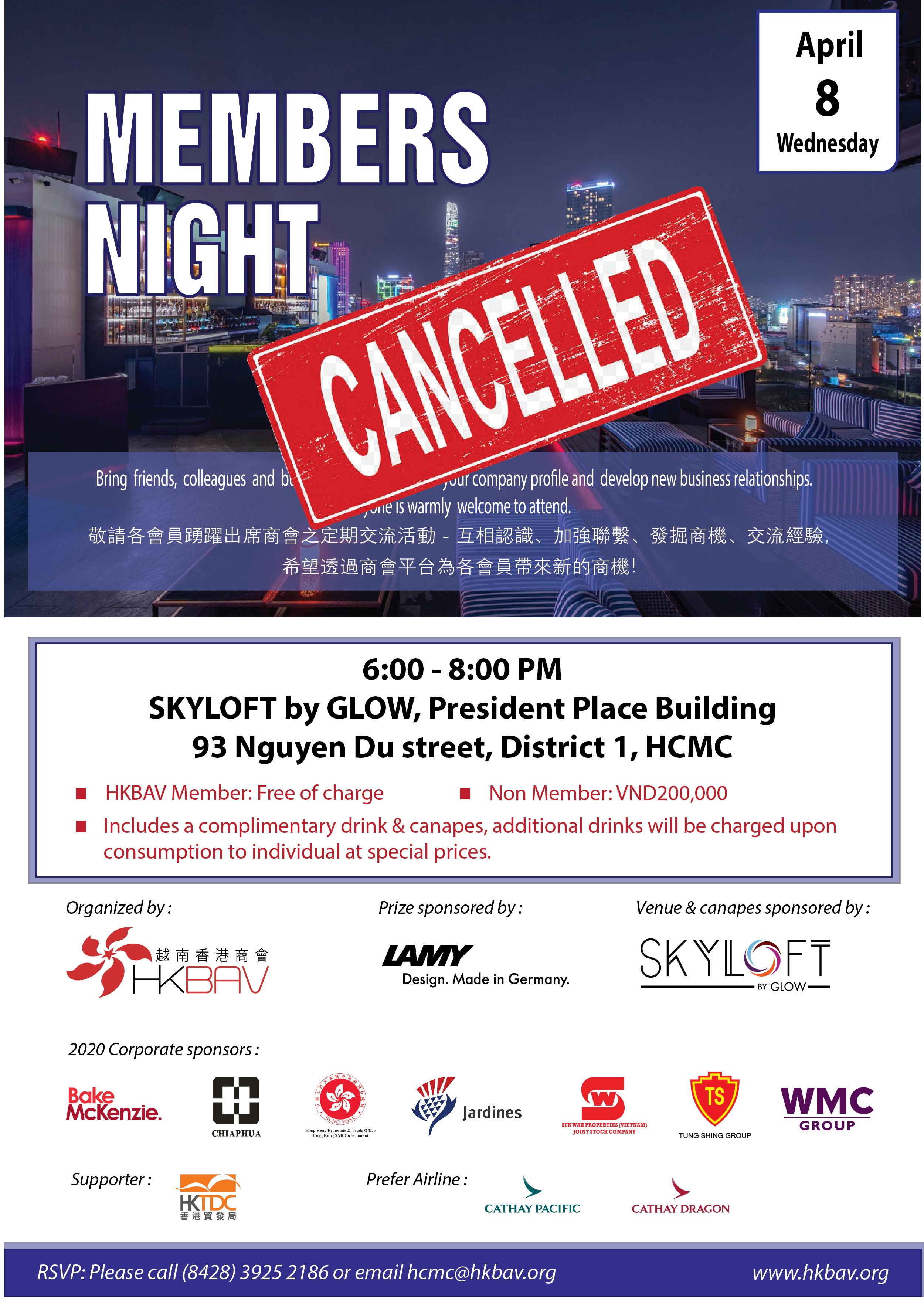 CANCELLATION: HKBAV MEMBERS NIGHT