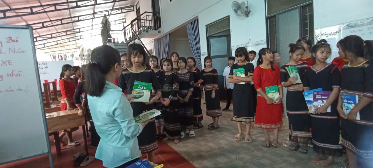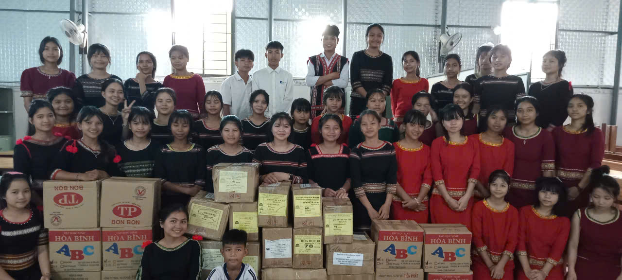 With an approved cost of 20,266,350 VND, we donated 1,115 school items, including textbooks and exercise books, to support 60 Xo Dang ethnic students (52 girls, 8 boys) from grades 6 to 12.