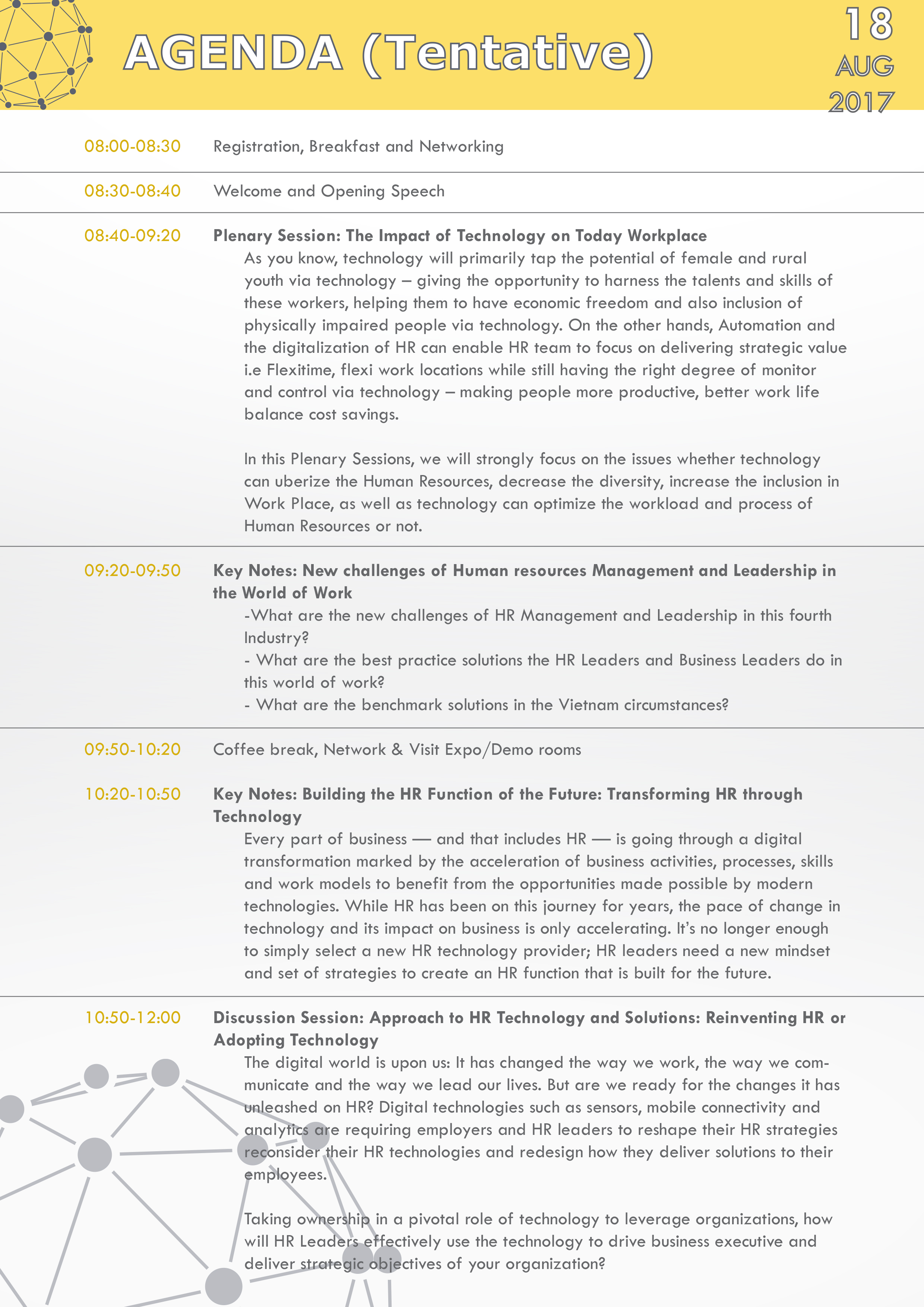 Time: 08:00 AM -17:00 PM, 18 August 2017