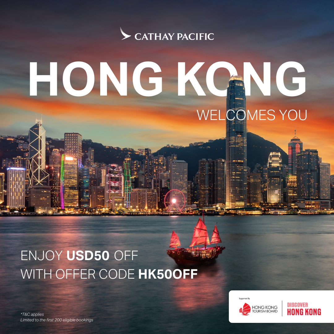 Experience it all today with promo code HK50OFF and enjoy USD50 off flights to Hong Kong.