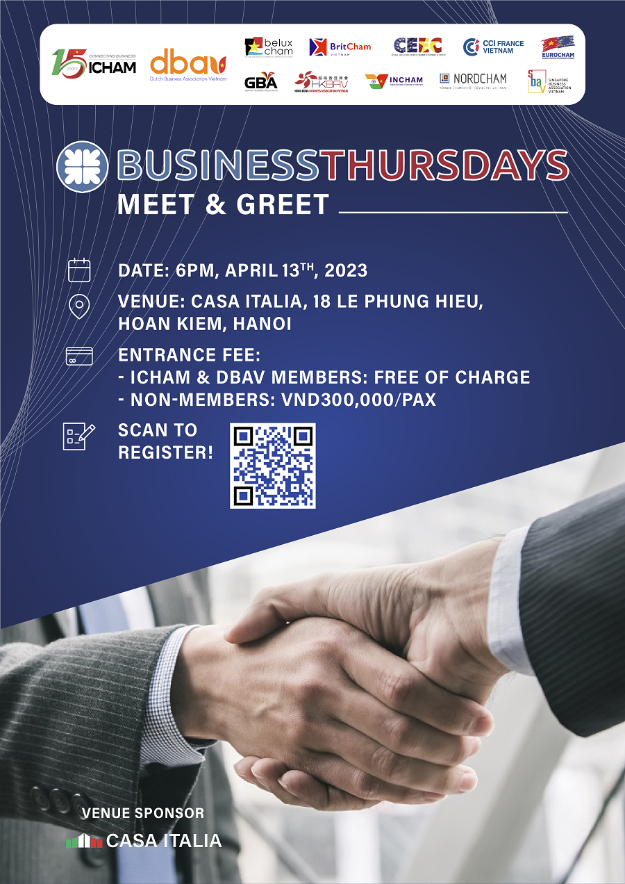 Co-organized by the Italian Chamber of Commerce in Vietnam (ICHAM) and the Dutch Business Association in Vietnam (DBAV), this edition of Business Thursday welcomes all individuals looking for an intriguing conversation with like-minded professionals, expanding their network with the ever-growing business community in Hanoi.