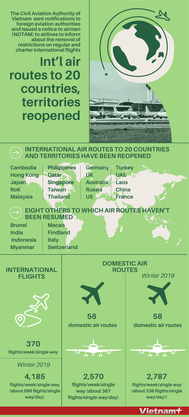 INT’L AIR ROUTES TO 20 COUNTRIES, TERRITORIES REOPENED