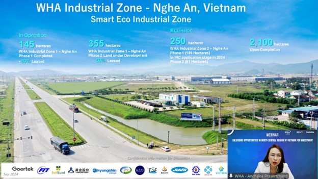 Ms. Anchalee Prasertchand, Vice President of WHA Vietnam, highlighted WHA’s leadership in developing eco-friendly industrial zones, with a particular focus on WHA Industrial Zone 1 – Nghe An.