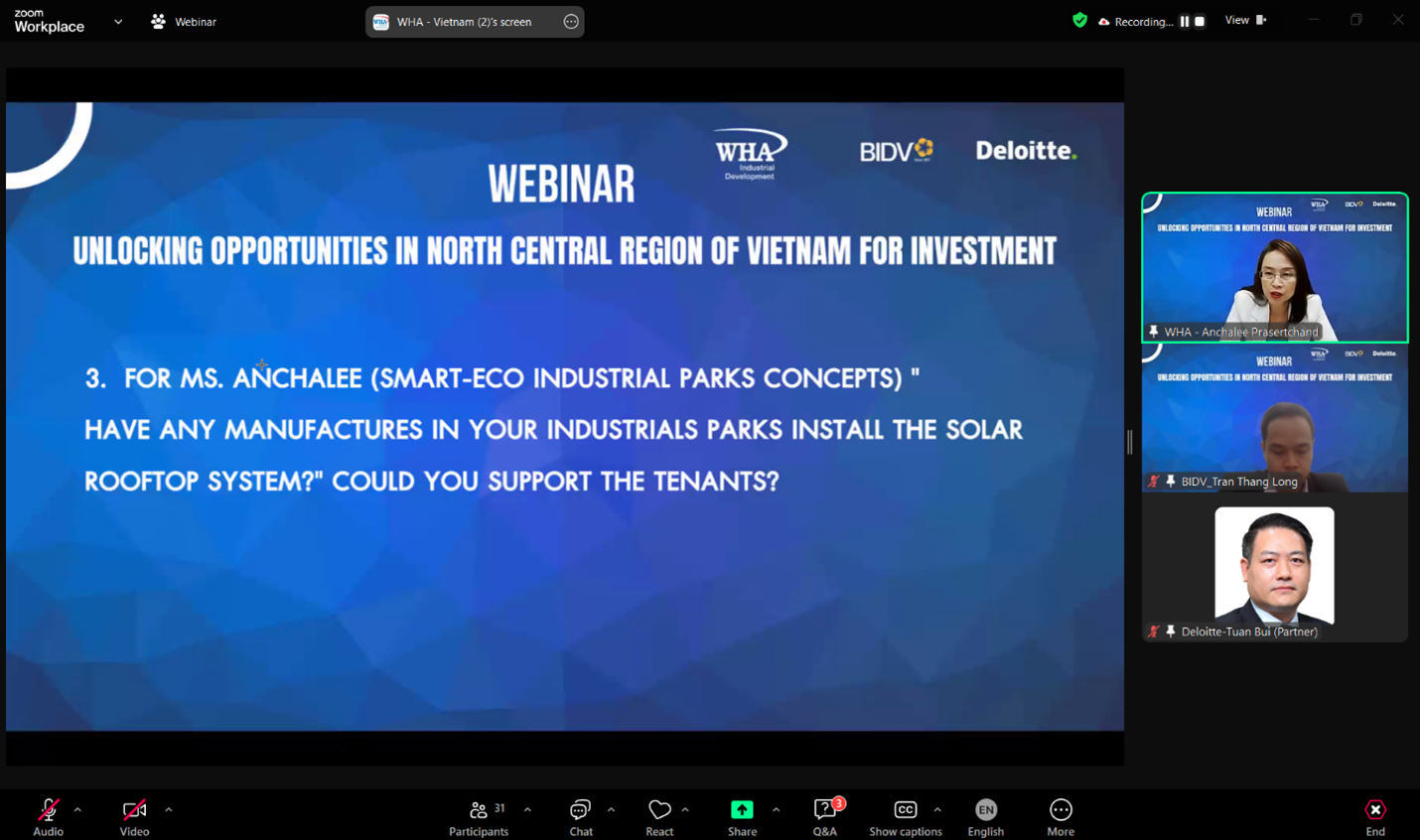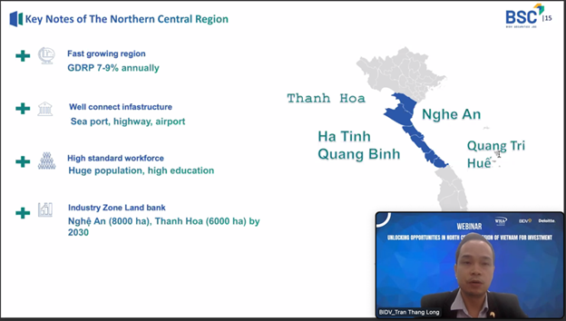 The webinar provided valuable insights into the region's economic landscape, infrastructure development, and strategic opportunities, positioning it as a rising hub for investment in Vietnam. Presentations from experts at BIDV Securities, Deloitte Vietnam, and WHA highlighted the region’s growing significance in Vietnam's economic transformation.