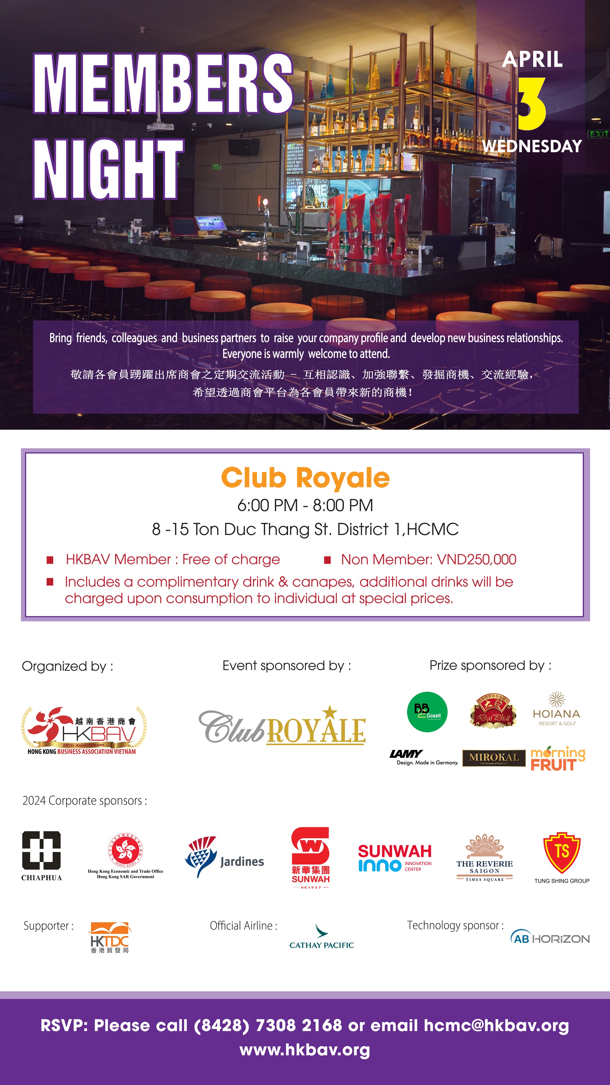 • HKBAV Member: Free of charge