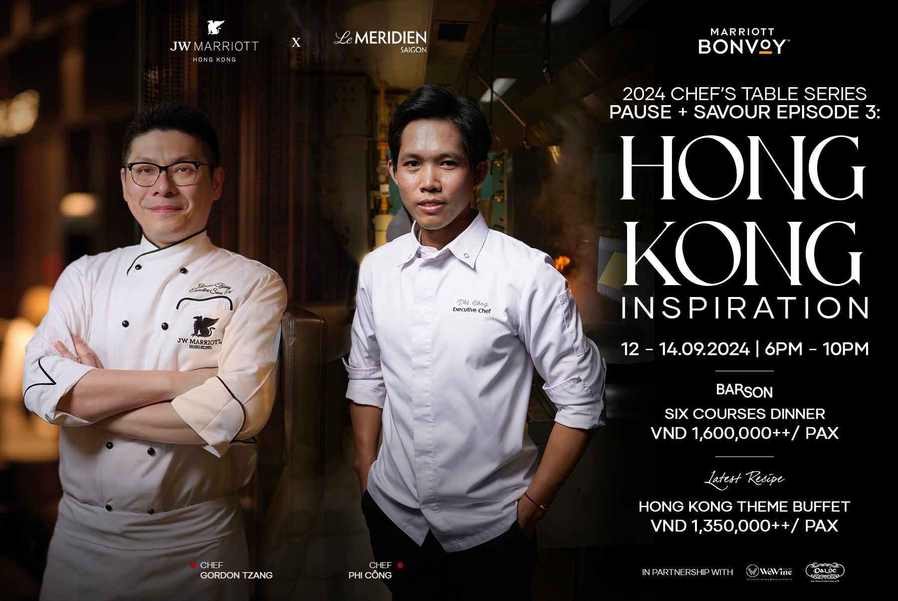Le Méridien Saigon is delighted to announce the third chapter of the renowned Pause + Savour Guest Chef Series, a unique culinary event that brings together chefs around the region to create an unforgettable dining experience. This chapter, aptly named "Hong Kong Inspiration" will feature a remarkable collaboration between Executive Sous Chef Gordon Tzang from JW Marriott Hotel Hong Kong, and Executive Chef Phi Công of Le Méridien Saigon.