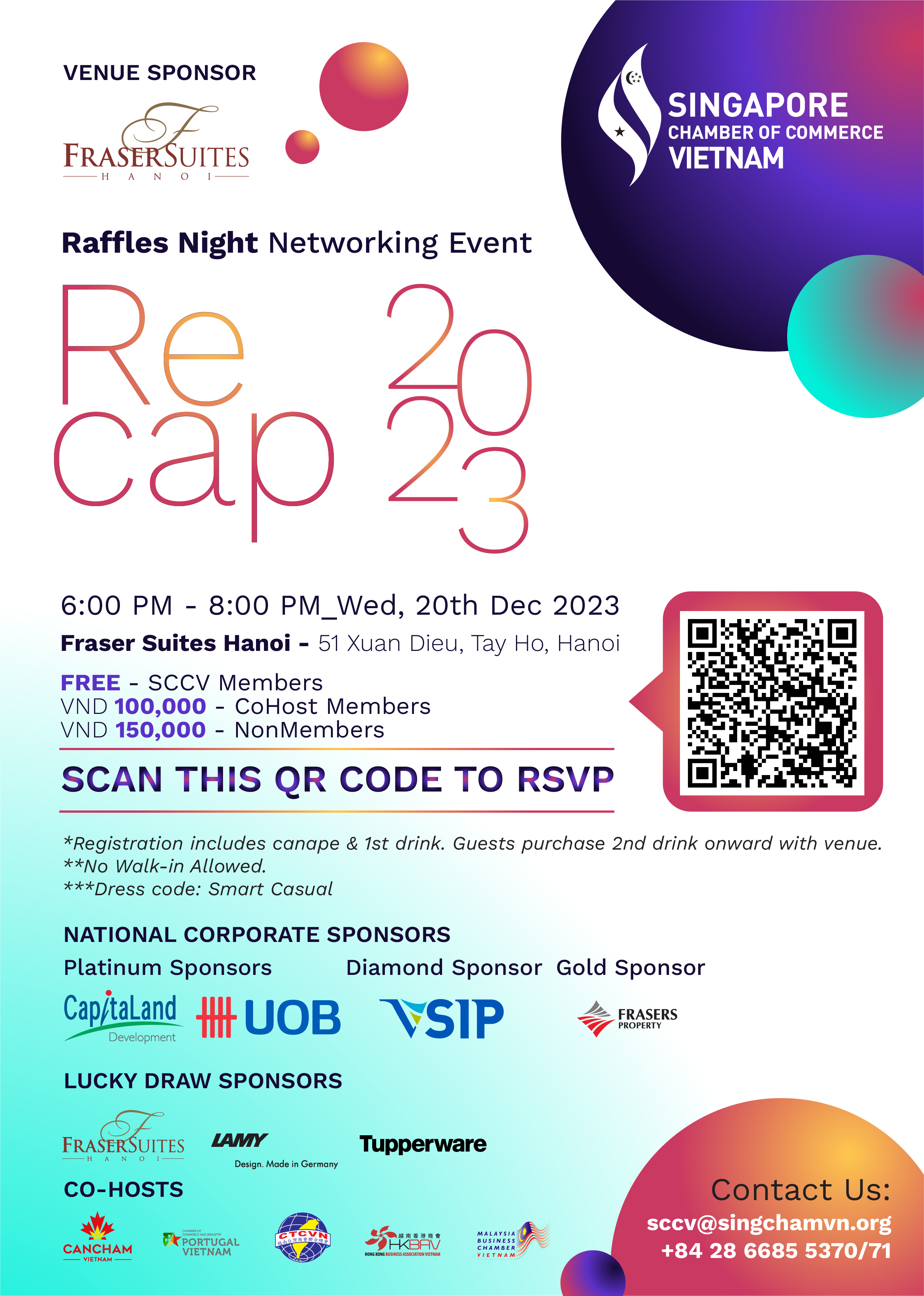 As we are approaching to the end of 2023, SCCV will be organizing the “Raffles Night Networking in Hanoi: Recap 2023” to meet with our members in the North side and look back to 01 year of the reunification between SCCV Ho Chi Minh city and SCCV Hanoi Chapter.