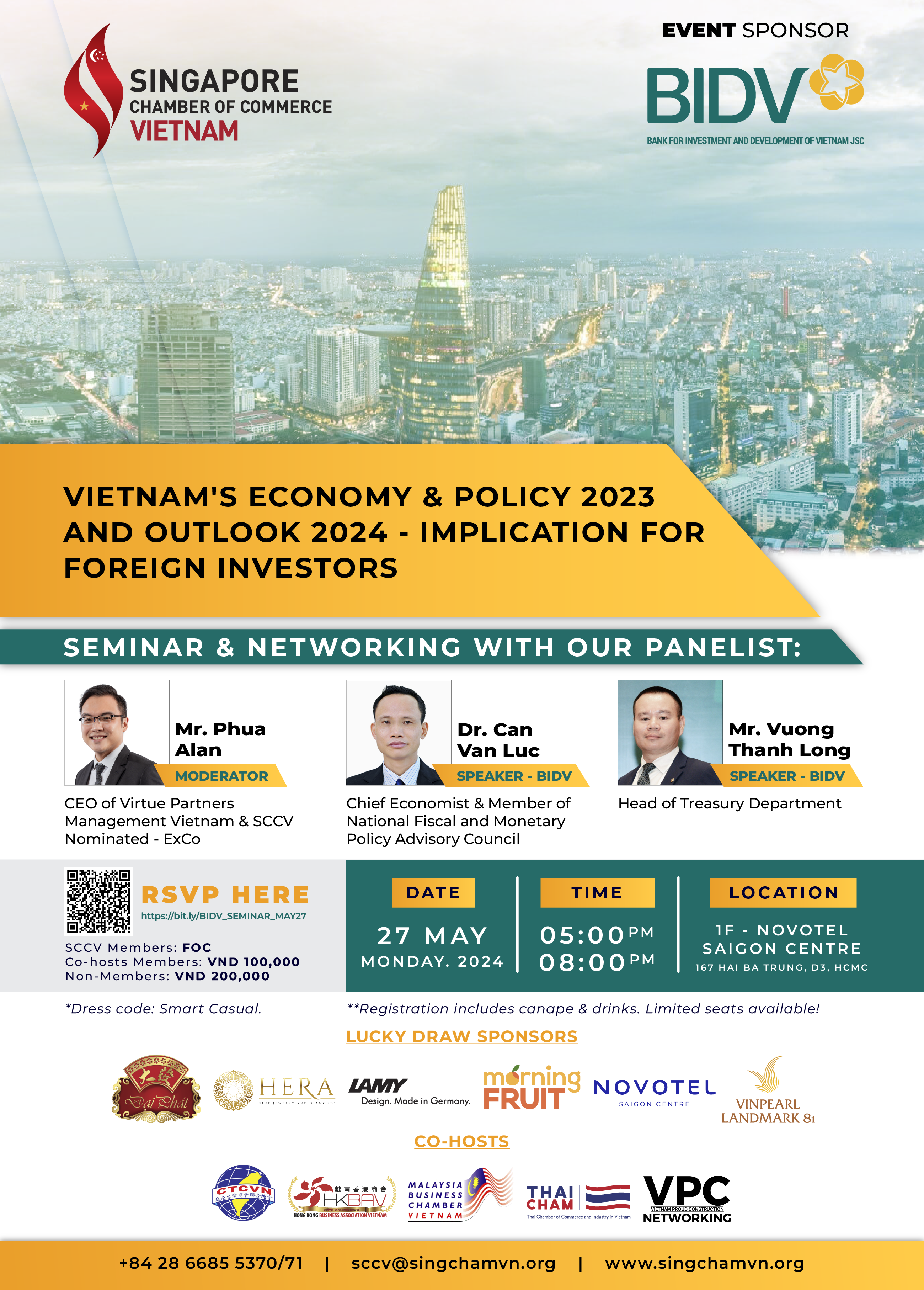 Don't miss out on the opportunity to secure your spot via RSVP by Thursday, 23rd May 2024. SCCV Secretariat will drop you an email within 48 hours to confirm your registration. For further inquiries, please contact SCCV Secretariat at sccv@singchamvn.org or (+84) 28 6685 5370/71. We look forward to your presence at the seminar and the opportunity to engage in insightful discussions.