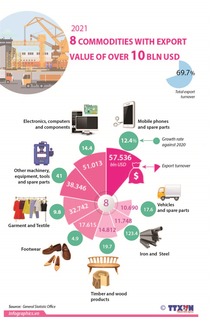 VIETNAM HAS EIGHT COMMODITIES WITH EXPORT TURNOVER OF OVER 10 BILLION USD