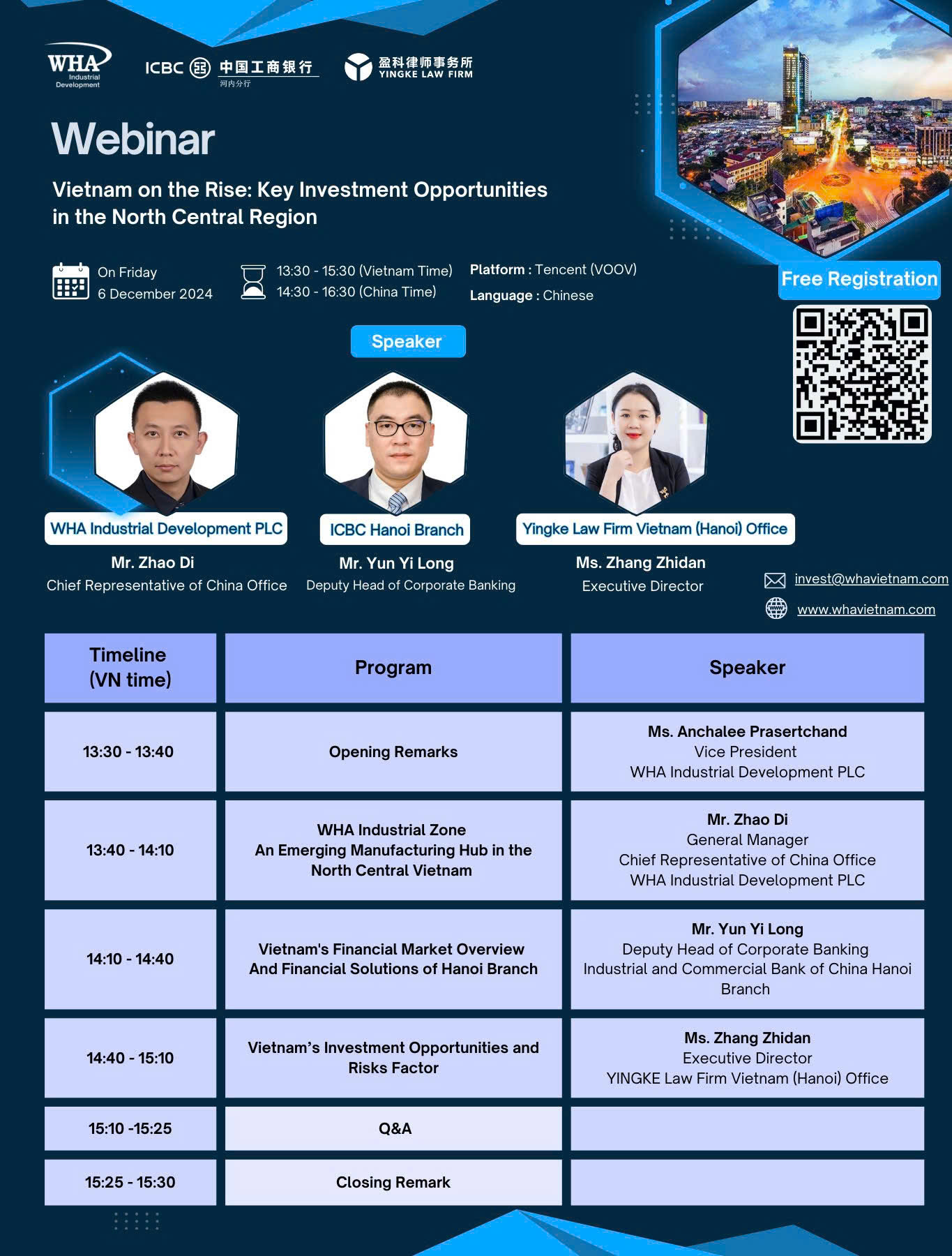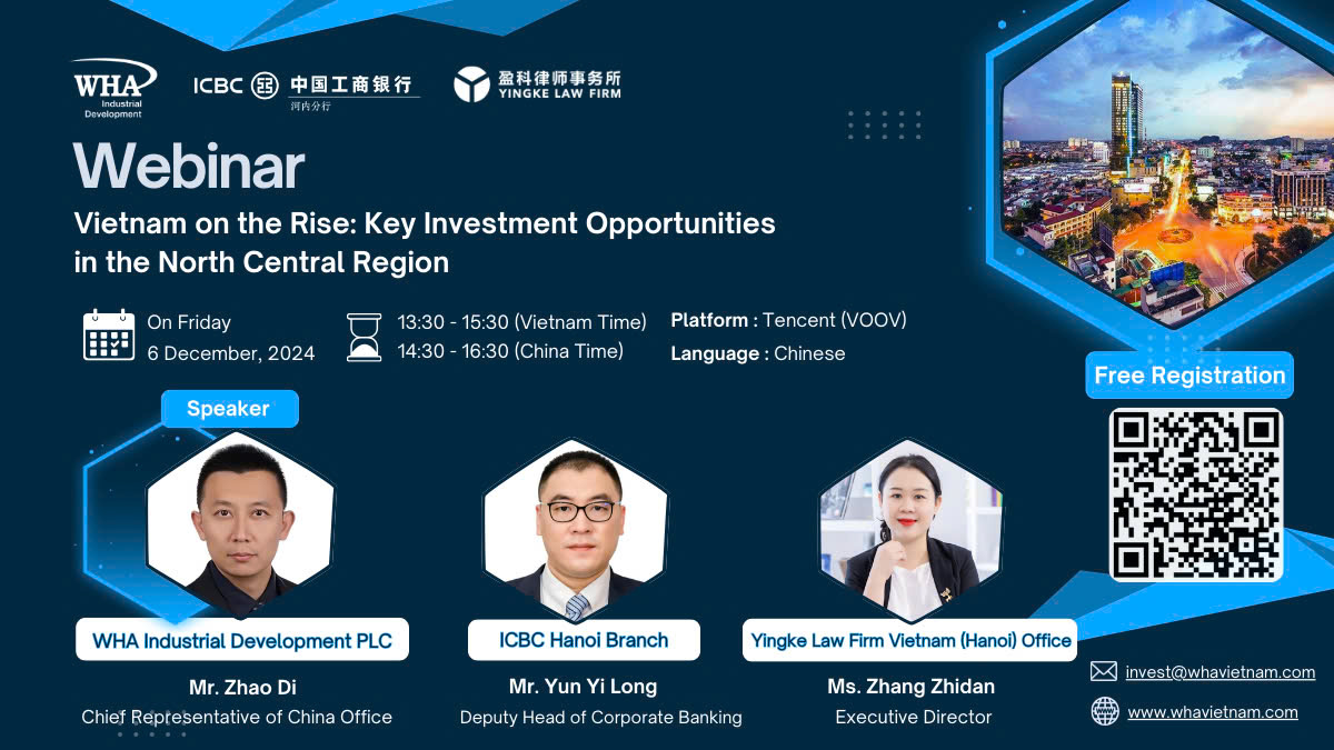 WHA Group invites you to an exclusive webinar, "Vietnam on the Rise: Key Investment Opportunities in the North Central Region," co-hosted with ICBC Bank and Yingke Law Firm. This insightful session will explore the expanding investment landscape in North Central Vietnam, with a particular focus on Nghe An Province—an emerging hub for industrial growth and land development.