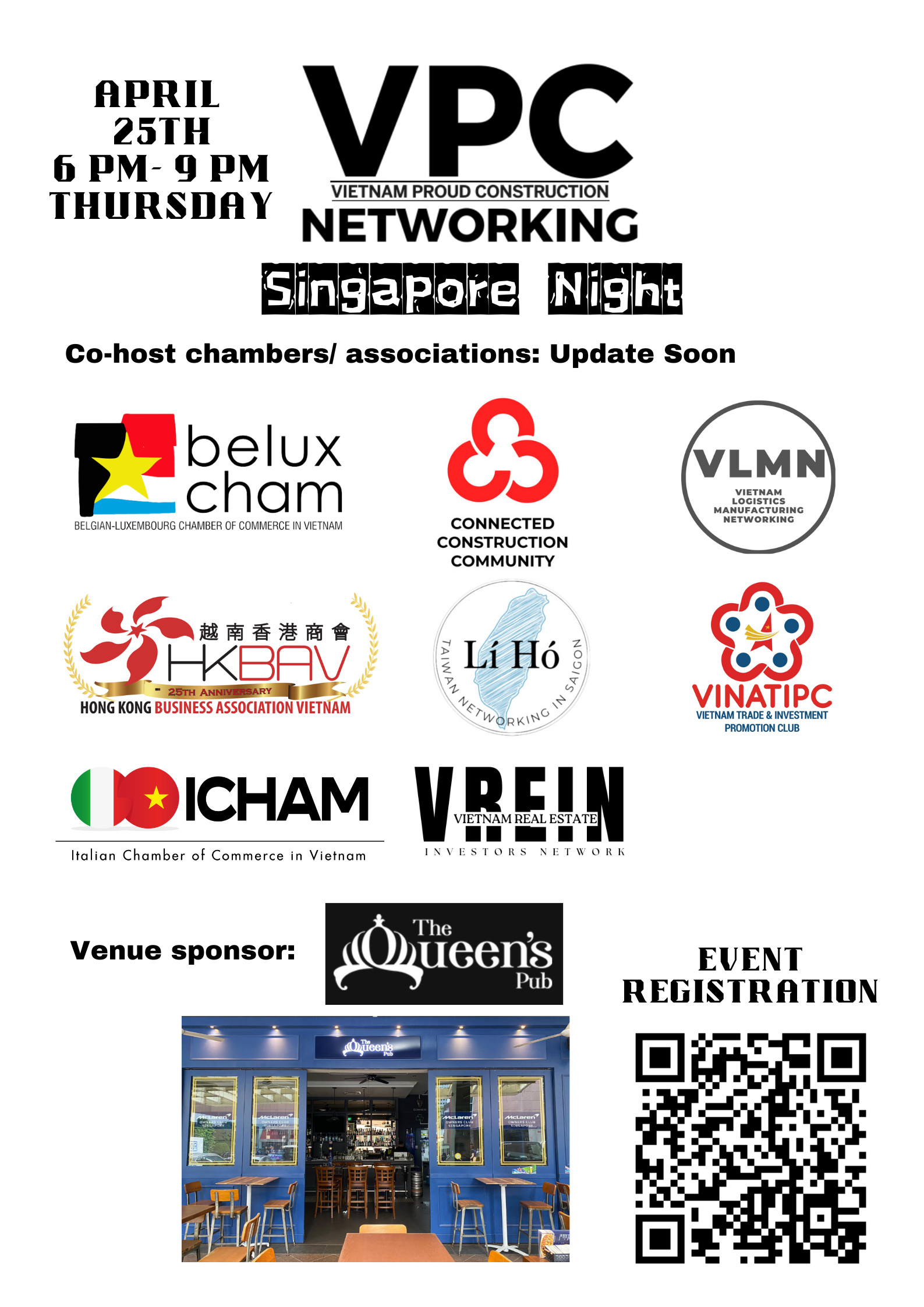 Venue Sponsor: The Queen's Pub (Address: 9 Raffles Blvd, Singapore)