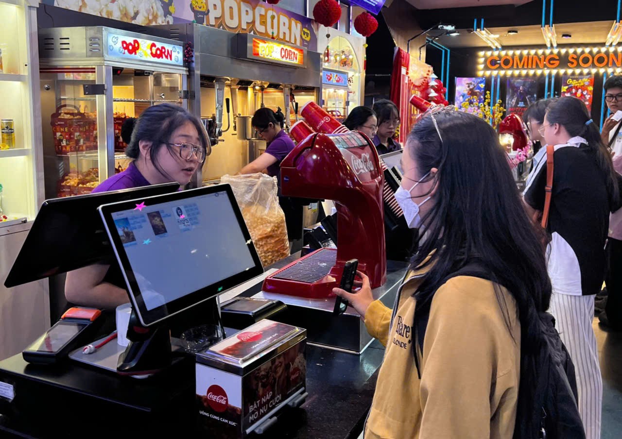 Moviegoers buy popcorn and drinks at a cinema concession counter in HCMC - PHOTO: GIA NGHI