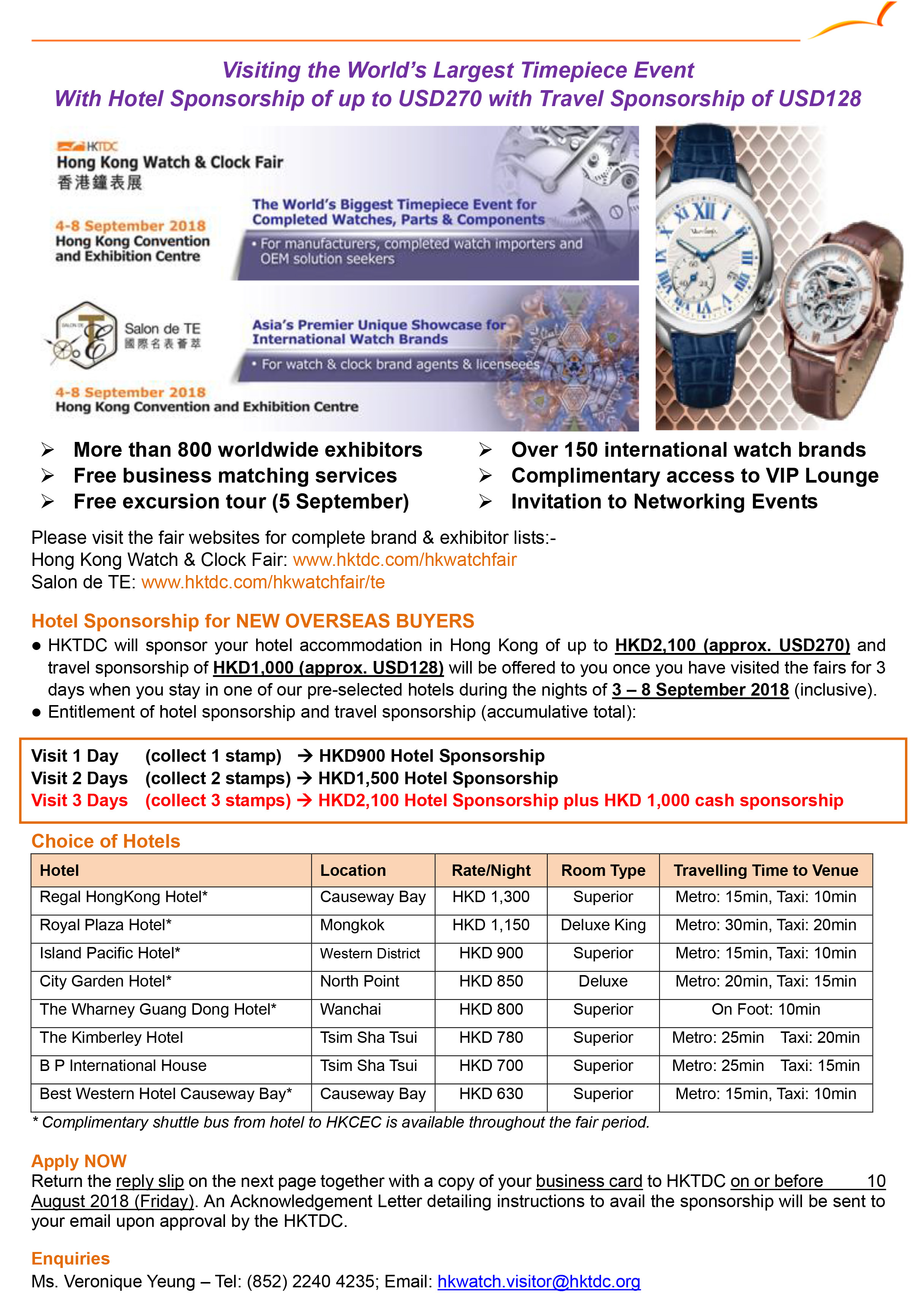 VISITING THE WORLD’S LARGEST TIMEPIECE EVENT WITH HOTEL SPONSORSHIP OF UP TO USD270 WITH TRAVEL SPONSORSHIP OF USD128